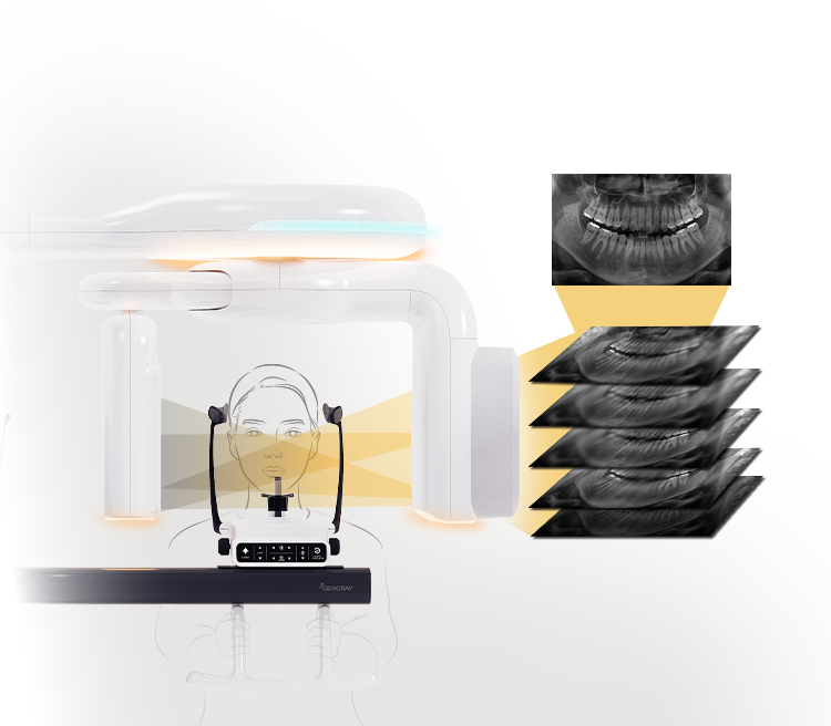 طراحی مکانیکی ثبت شده Genoray تصاویر Cephalo را با حداقل ارتیفکت تصویری  قابل استفاده برای GT300-C ارائه می‌دهد.